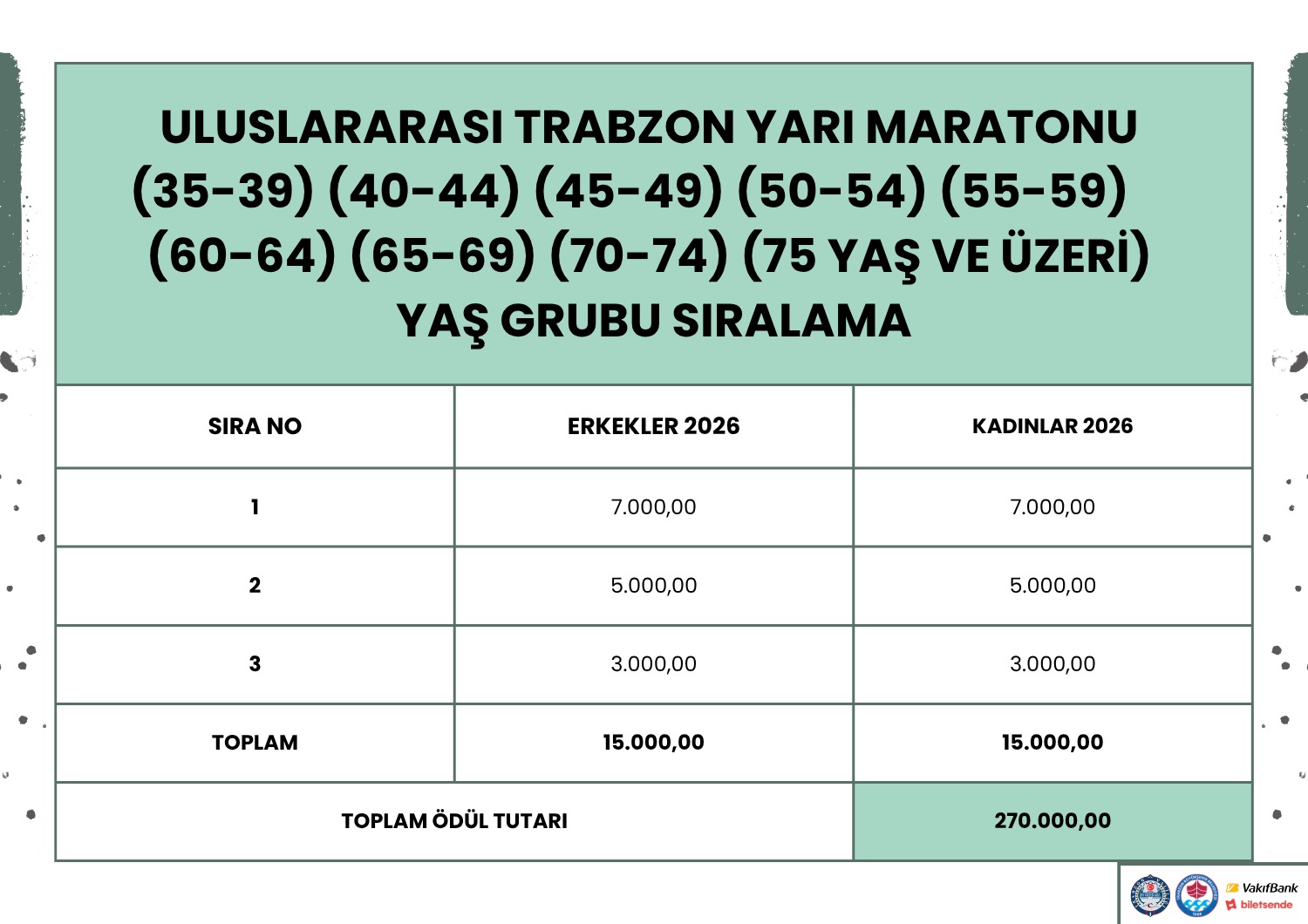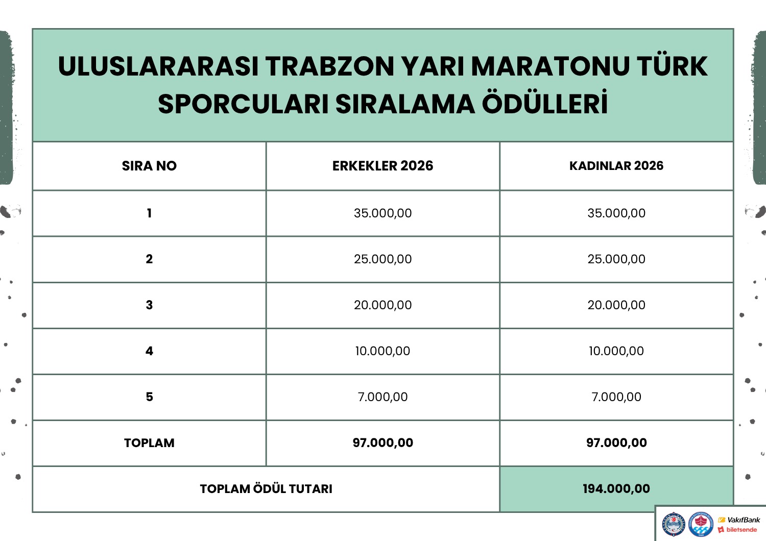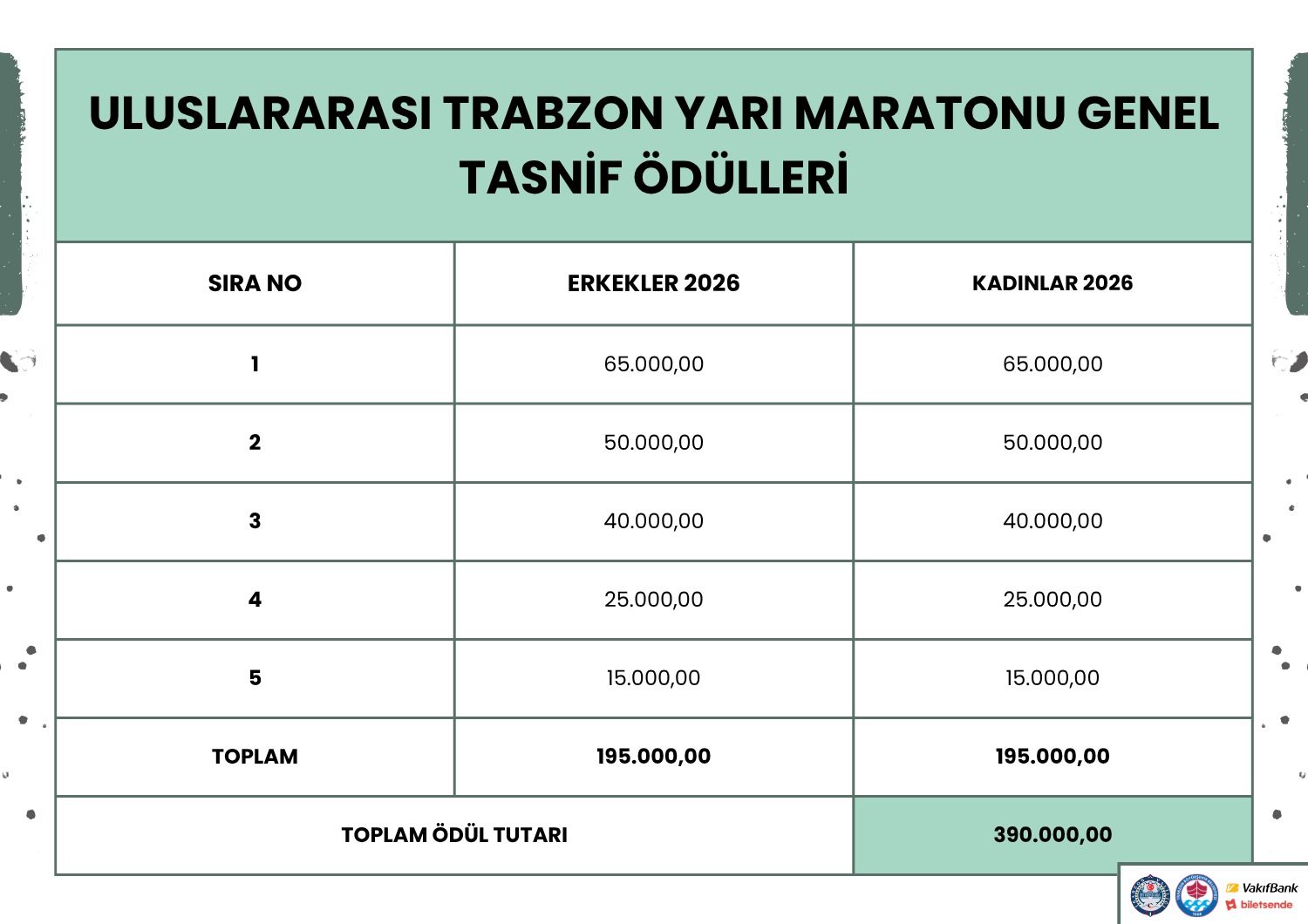 46. Trabzon Yarı Maratonu için ödül tablosu nasıl olacak?