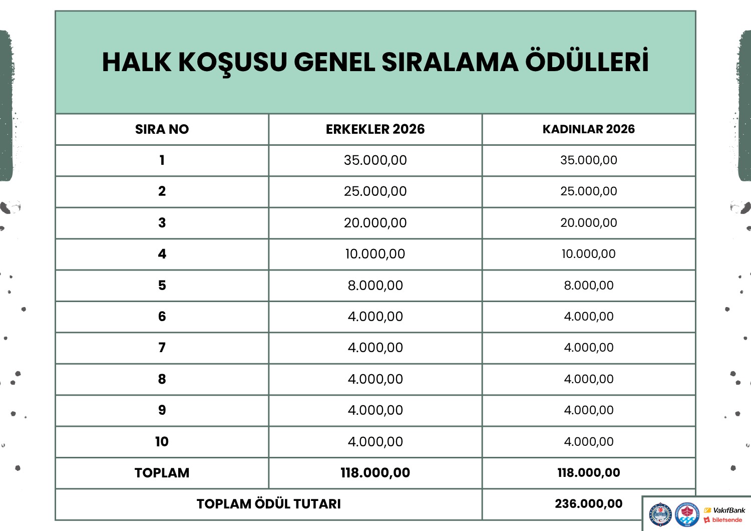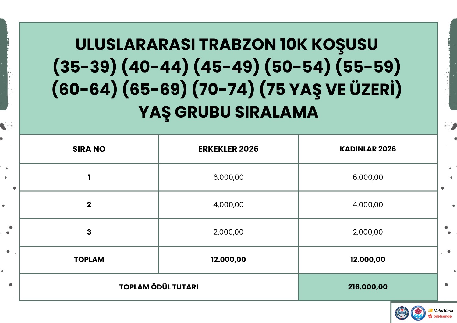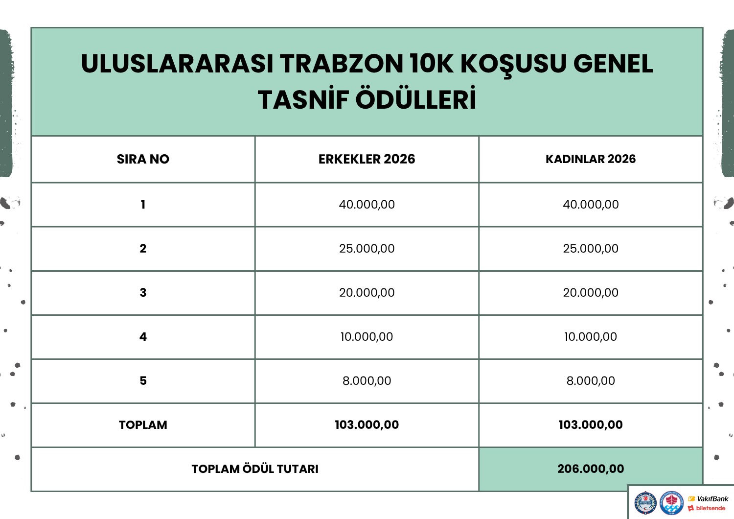 46. Trabzon Yarı Maratonu için ödül tablosu nasıl olacak?